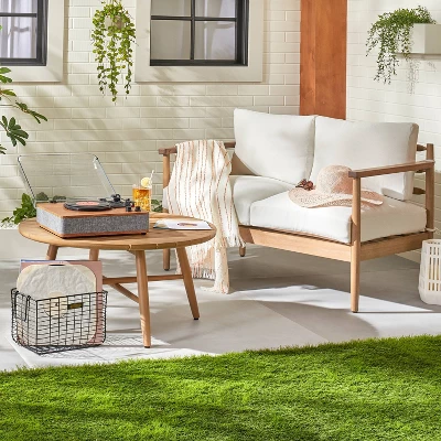 Groove to your favorite songs with this 3-Speed Record Player from Hearth & Hand™ with Magnolia. Featuring Bluetooth connectivity, this three-speed turntable lets you connect easily to your smartphone, tablet, computer or a Bluetooth speaker. The built-in speakers with pitch control offer superior sound, while the three-speed design plays all three standard sizes of vinyl records. Featuring a vintage-inspired suitcase design with a wooden base and woven gray fabric accents, it’s sure to add classic style to your decor. Easy to carry, it features a transparent cover to keep the record safe.